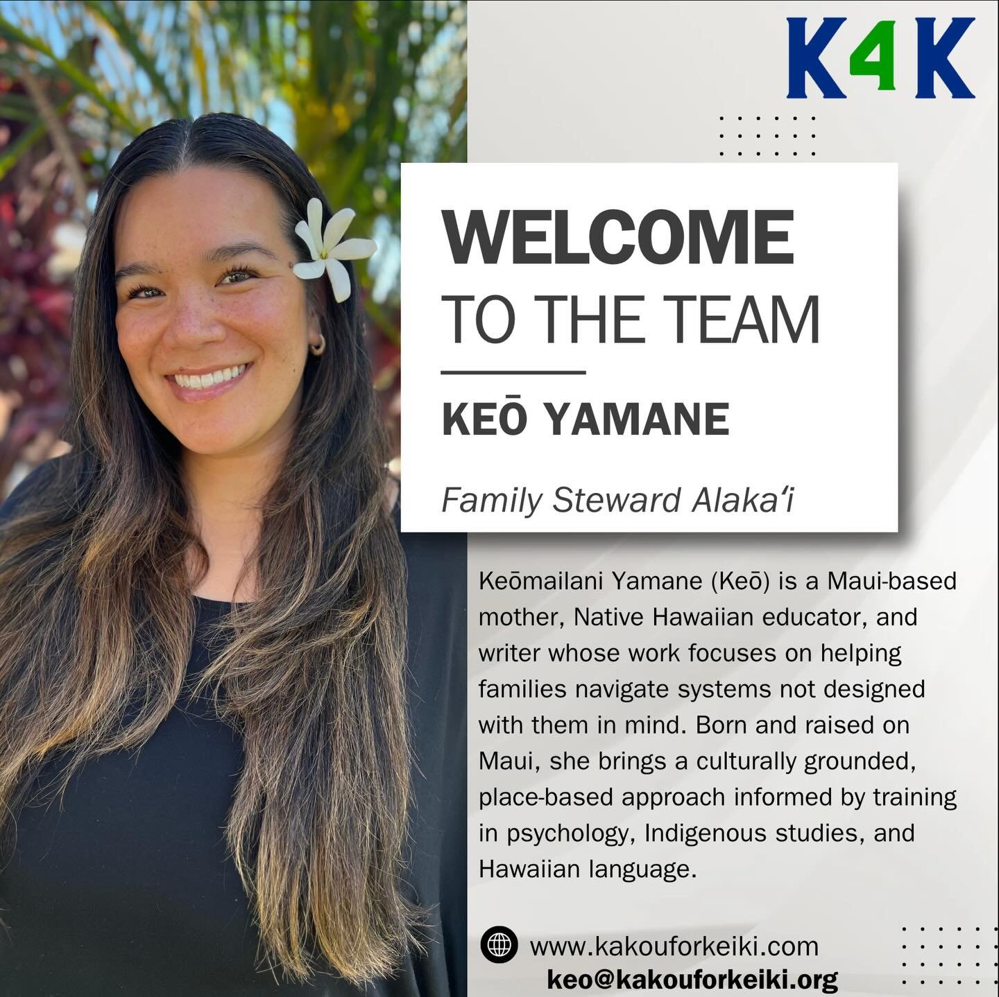 Kākou for Keiki (K4K) gathers family advocates, service providers, medical professionals, government officials, and community members to achieve greater outcomes together for the health & resilience of all keiki ages birth through five in Maui County.